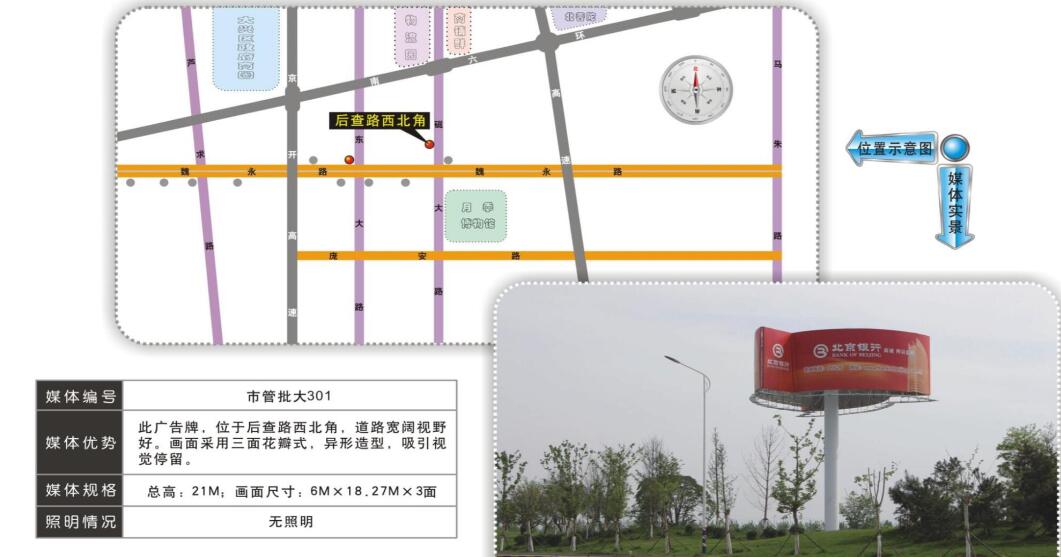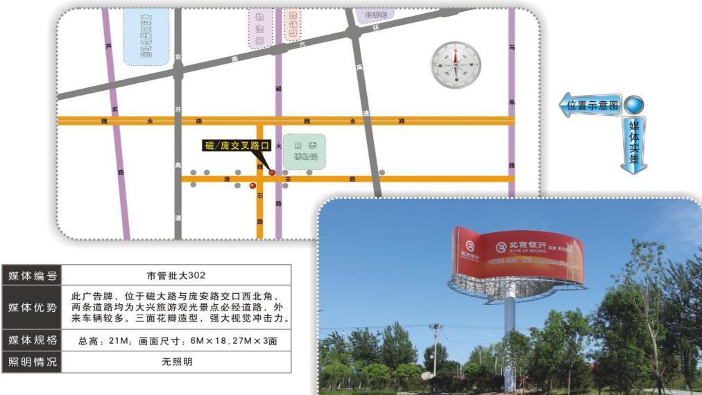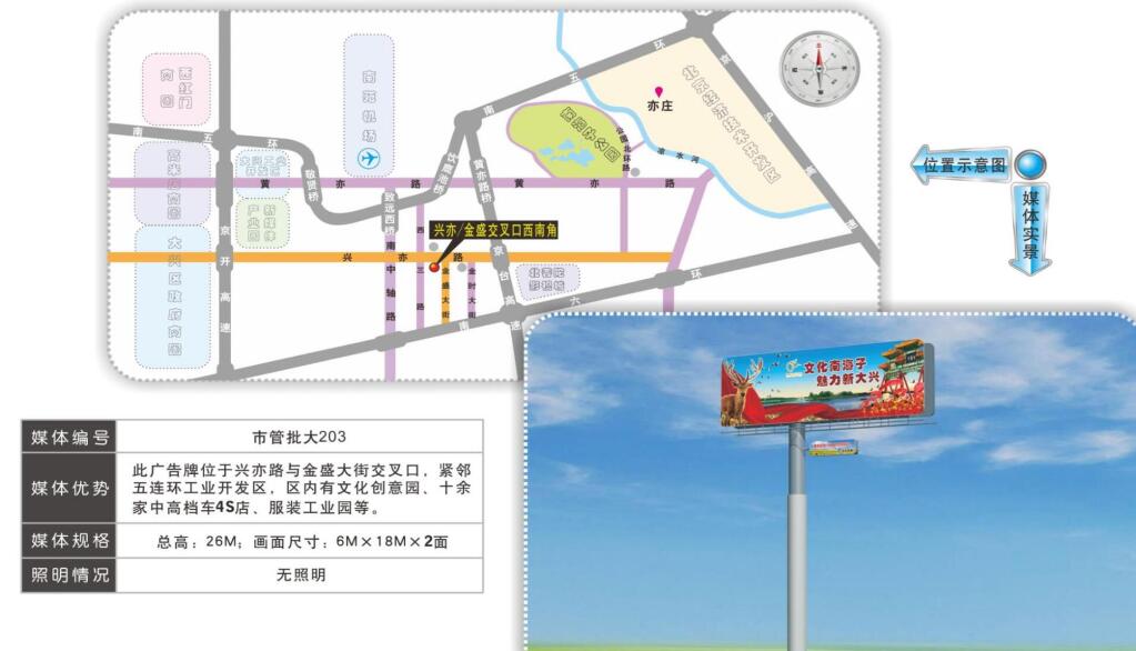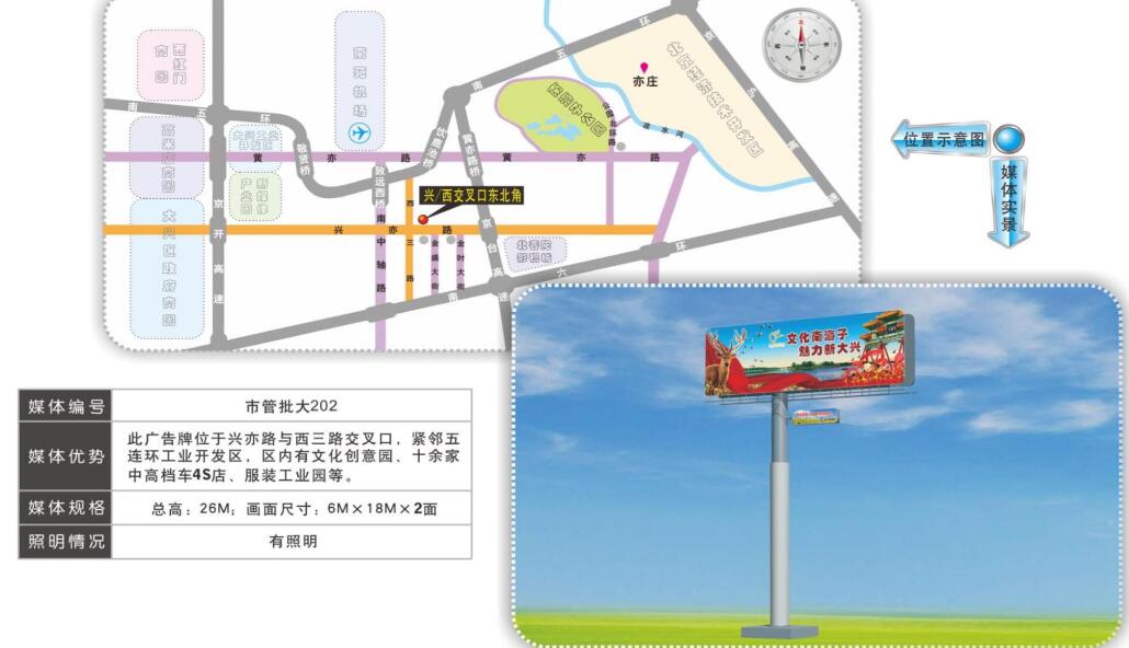 媒體概述:萬事成傳媒提供大興單立柱廣告,亦莊單立柱廣告,大興高炮擎天柱廣告,亦莊高炮擎天柱廣告,京開高米店單立柱廣告,五環六環單立柱廣告,大興戶外大牌,亦莊戶外大牌
