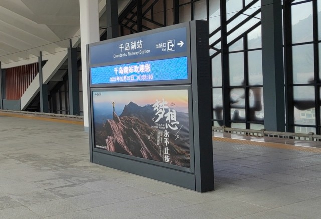 千島湖站候車廳進站檢票口內(nèi)落地燈箱廣告