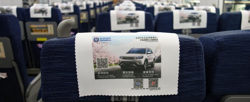 信陽(yáng)一杭州線高鐵頭枕巾廣告