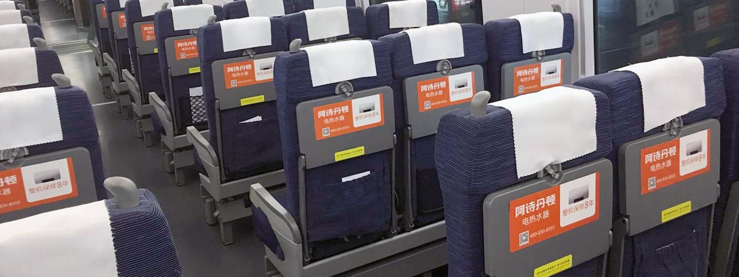 位于所有高鐵車廂內(nèi)行李架下方,對(duì)稱發(fā)布,氣勢(shì)磅礴,視覺沖擊力強(qiáng),無論坐、立、行,都能有絕佳的視覺效果,利于品牌整體性展示。