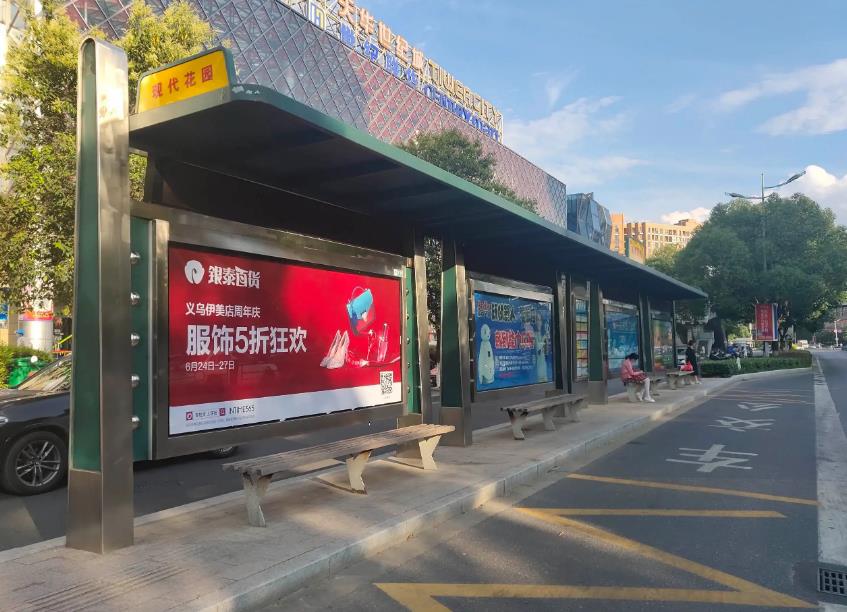 公交候車亭廣告即普遍指在公交車候車亭內建一長方體燈箱,在燈箱的正反兩面添加畫面,用以廣告宣傳。