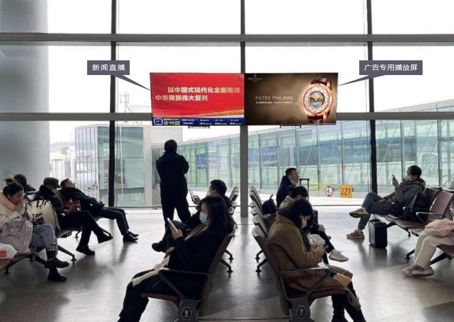 100%覆蓋出發、到達的旅客,共10臺LCD刷屏機分布在出發大廳、安檢大廳、候機區、達到層邊檢廳。