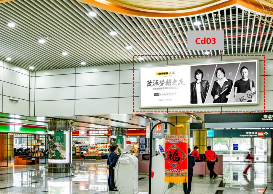 Cd02、03位于媒體位于國內換票大廳內西側墻面上,靠近換票廳入口;