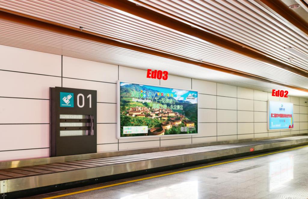 該區域較封閉,且等候行李時間較長,媒體重復收視率高,廣告價值高,同排兩個媒體組合投放能形成品牌通道的震撼效果。