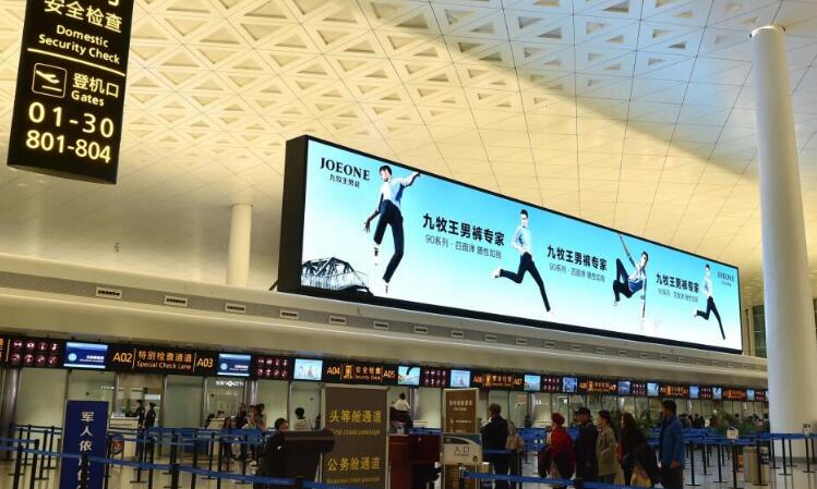 國內安檢口巨型屏幕,于機場內最具價值的國內安檢口正上方