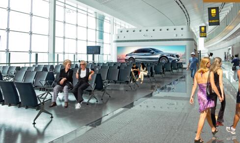 位于離港的必經(jīng)通道旁,能全面輻射到達(dá)人群,同時(shí)GTC綜合換乘樞紐、要客區(qū)車輛可見,輻射范圍廣。
