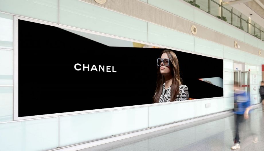 媒體位于 T1 航站樓到達層行李廳外排,燈箱自帶高光。周邊環 境寬闊、明亮,媒體環境干凈干擾少,畫面視覺沖擊力強。