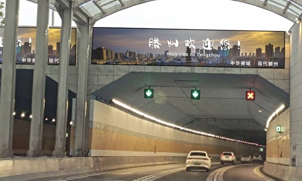 屏幕位置:山東省滕州市墨子湖底隧道東西兩側出入口