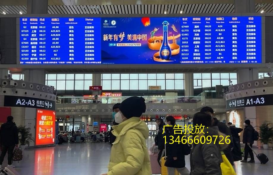 南京南站候車大廳中央廣告屏,讓品牌閃耀金陵