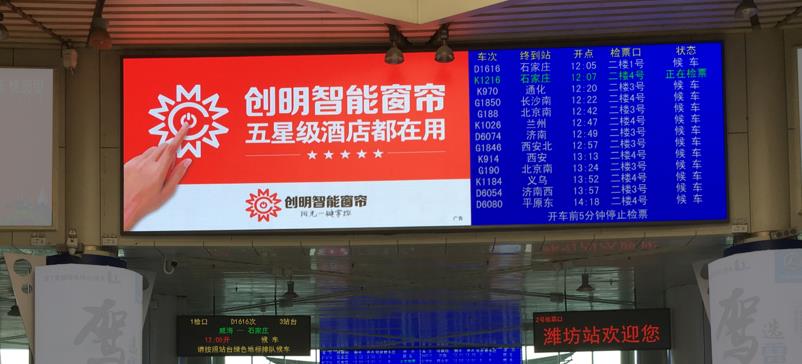 濰坊高鐵站廣告,濰坊站led屏廣告,高鐵站廣告投放,萬事成傳媒