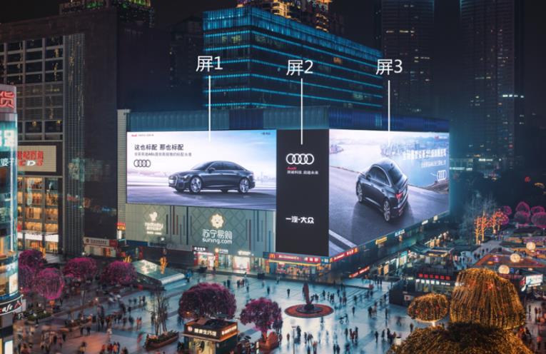 高顏值:融入建筑美學(xué)與商圈環(huán)境,使用高精度屏體一展都市繁華;區(qū)別于其他地標(biāo)展現(xiàn)形成受限,大屏方正,視野處于行人的觀看最佳區(qū)域,帶給目標(biāo)受眾更具沉浸式的體驗(yàn),更能完美呈現(xiàn)品牌客戶的動(dòng)態(tài)視頻和靜態(tài)畫面。