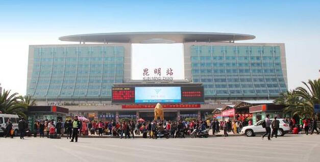 昆明站于1966隨著貴昆鐵路的通車啟用,2004年12月28日新客站擴建工程竣工,2005年1月1日正式投入運營。