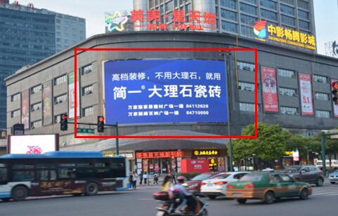 該媒體位于星沙開元路與天華路交匯處星沙第一高樓開源鑫貿裙樓墻面,位于星沙城區主要交通樞紐