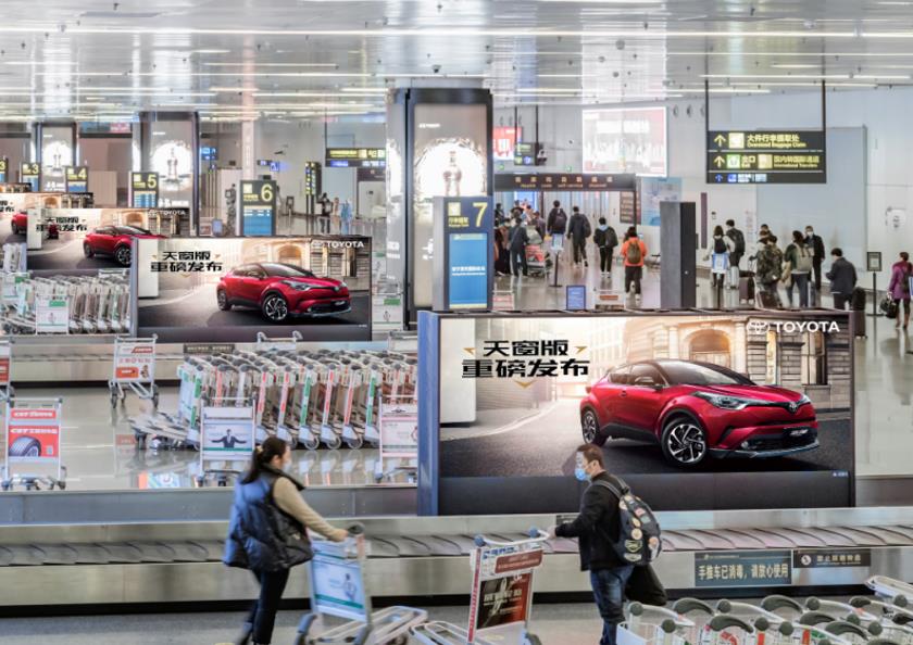 南寧吳圩機場國內(nèi)到達行李轉(zhuǎn)盤上方LCD拼屏廣告