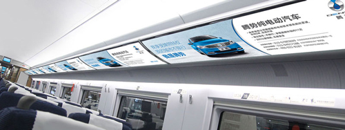 位于所有高鐵車廂內(nèi)行李架下方,對稱發(fā)布,氣勢磅礴,視覺沖擊力強,無論坐、立、行,都能有絕佳的視覺效果,利于品牌整體性展示。
