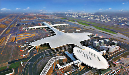 深圳寶安國際機(jī)場位于珠江口東岸的一片濱海平原上,地理坐標(biāo)為東經(jīng)113。49’,北緯22。36’,距離深圳市區(qū)32公里,場地遼闊,凈空條件優(yōu)良,可供大型客貨機(jī)起降,符合大型國際機(jī)場運(yùn)行標(biāo)準(zhǔn),深圳寶安國際機(jī)場實(shí)行24小時(shí)運(yùn)行服務(wù)。
