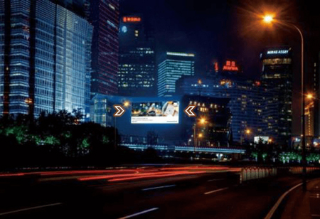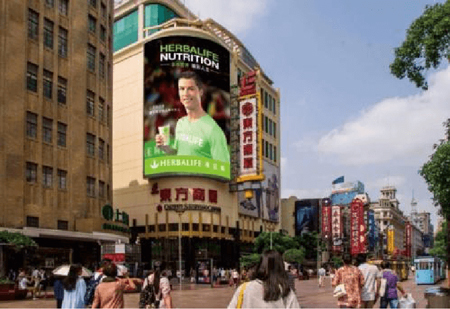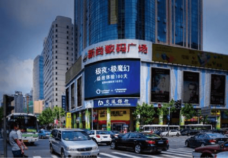 干道:地處繁華的淮海路,是上海中心商業(yè)區(qū)的重要交通路段,且是延安路高架可見(jiàn)最大的LED屏