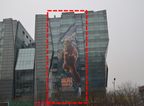 創(chuàng)意方案四:整面(朝東)+東南;廣告總面積: 2800m²+900m²=3700m2(圖片為改造前的實(shí)景照片) 發(fā)布費(fèi)用:(7天:660萬(wàn)) 制作費(fèi)有+上下刊費(fèi)用:110萬(wàn)