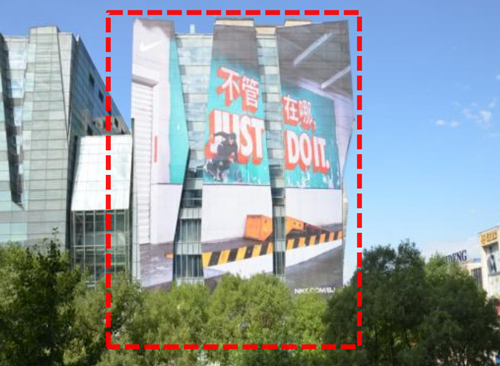 創(chuàng)意方案三:整面(朝東);廣告總面積: 2800m²(圖片為改造前的實(shí)景照片) 發(fā)布費(fèi)用:(7天:460萬(wàn)) 制作費(fèi)有+上下刊費(fèi)用:84萬(wàn)