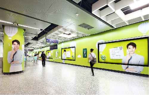 組合形式 :超級墻貼75㎡+13根站廳包柱+8塊6封站廳燈箱+玻璃貼(不少于20塊)