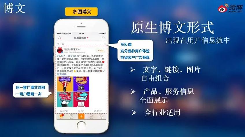 微博廣告類型很多,如開屏貼片廣告、信息流廣告、賬戶推廣、板塊植入、關鍵詞廣告等,以不同的方式呈現,具有不同的特點和優勢。