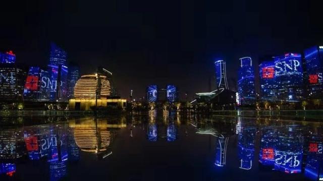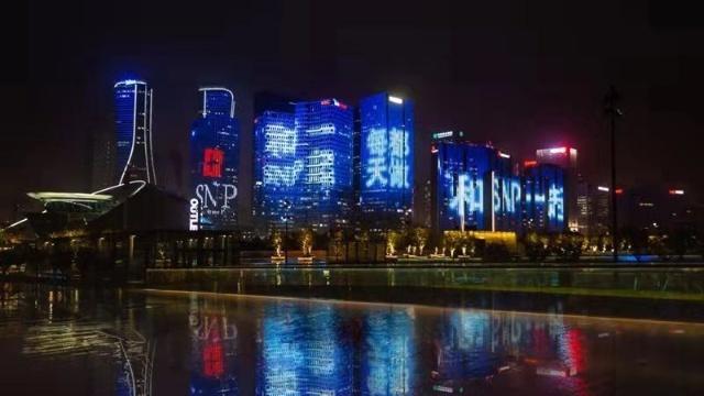 SNP10周年×環(huán)球天幕燈光秀,錢江新城,美妝行業(yè)的首次天幕秀全球最大戶外屏幕為SNP亮起,伴隨錢塘潮鳴與璀璨光陰,燃起城市之光,SNP已被世界看見!