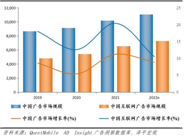 目前,根據(jù)QuestMobile統(tǒng)計(jì)數(shù)據(jù)顯示,2021年中國廣告市場規(guī)模超過萬億,同比增速超過11%,互聯(lián)網(wǎng)廣告市場規(guī)模超過6500億,同比增速超過20%。預(yù)計(jì)2022年中國廣告市場規(guī)模為11069億元,同比增速10.5%,互聯(lián)網(wǎng)廣告市場規(guī)模為7237.9億元,同比增速8.9%。這意味著我國傳媒業(yè)市場發(fā)生了本質(zhì)性變化,互聯(lián)網(wǎng)媒體成為真正的主導(dǎo),而傳統(tǒng)媒體逐漸式微,中國傳媒市場發(fā)生了根本性的改變。